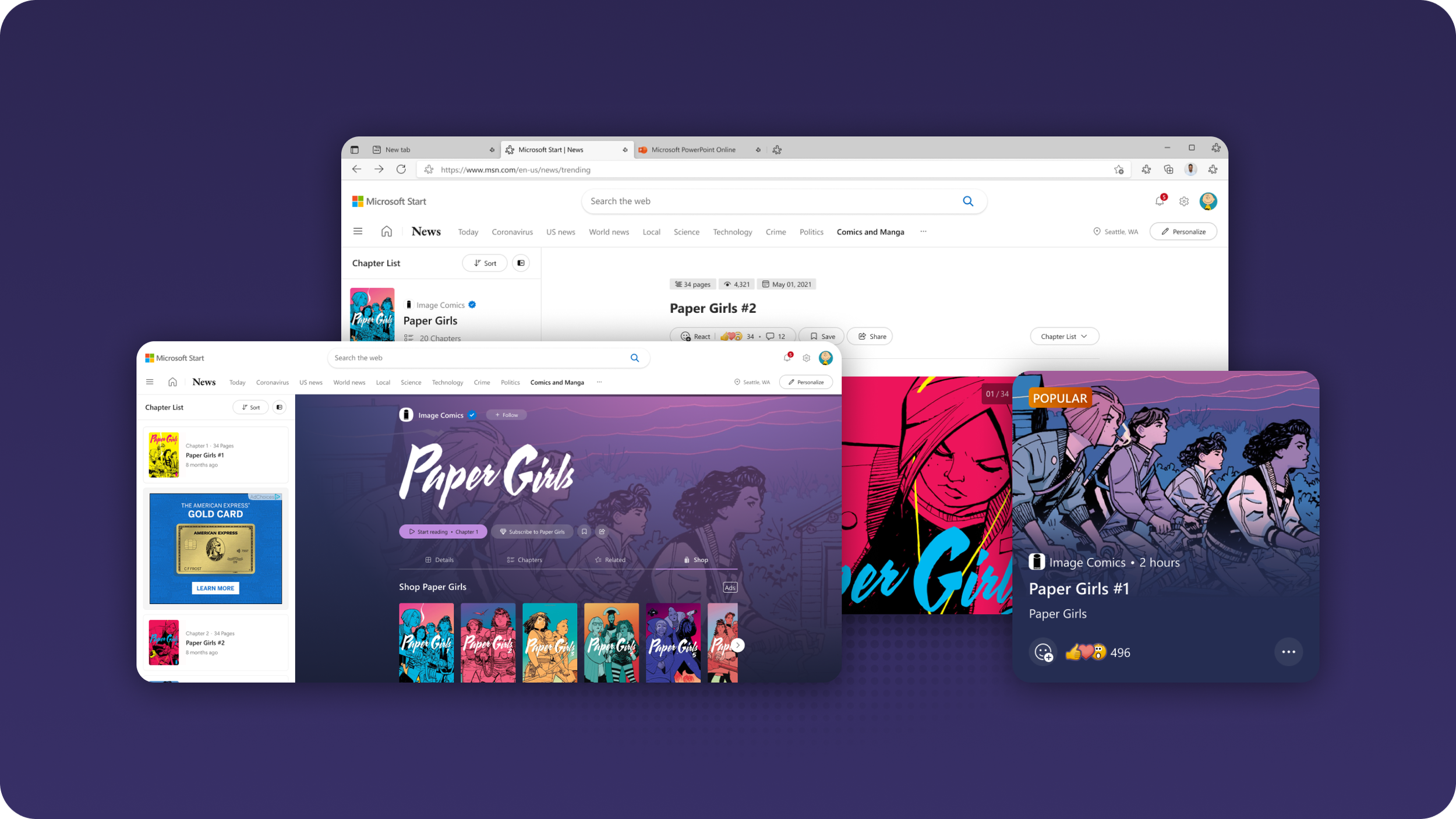 Microsoft Start is a content hub for millions of Microsoft users across Windows, Edge, Bing, and mobile. In addition to news, sports, and video, the platform was experimenting with daily strip comics to drive new organic traffic in the US market. Recognizing the global growth of the comics and manga industry, I co-led the design of a north-star framework to expand beyond strip comics and position Microsoft Start as a destination for serialized graphic novels and manga across global markets.